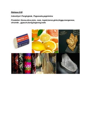 Mga Ibon Bigas- 347 Mais- 270 Niyog-210 Tubo-41 Abaca-20 Tabako-16 Iba. Mga Mineral Mga Pangunahing produkto ng bansa Mga karaniwang mineral sa Pilipinas. Mula noong 1880 ang South Africa ay.