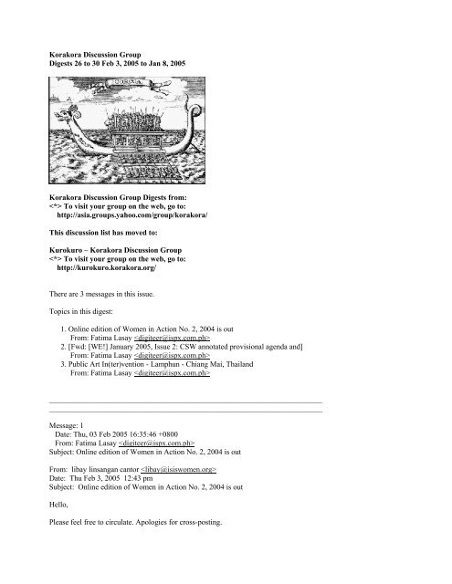 Korakora Discussion Group Digests 26 To 30 Feb 3 2005 To Jan 8