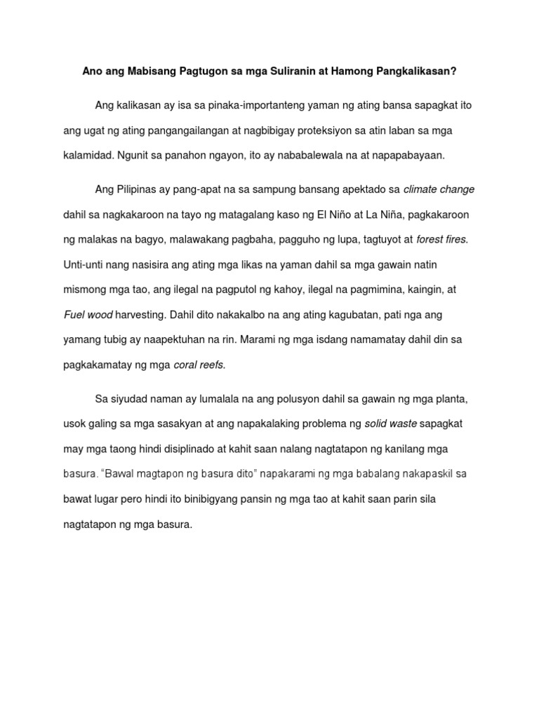Ano Ang Mabisang Pagtugon Sa Mga Suliranin At Hamong Pangkalikasan Pdf